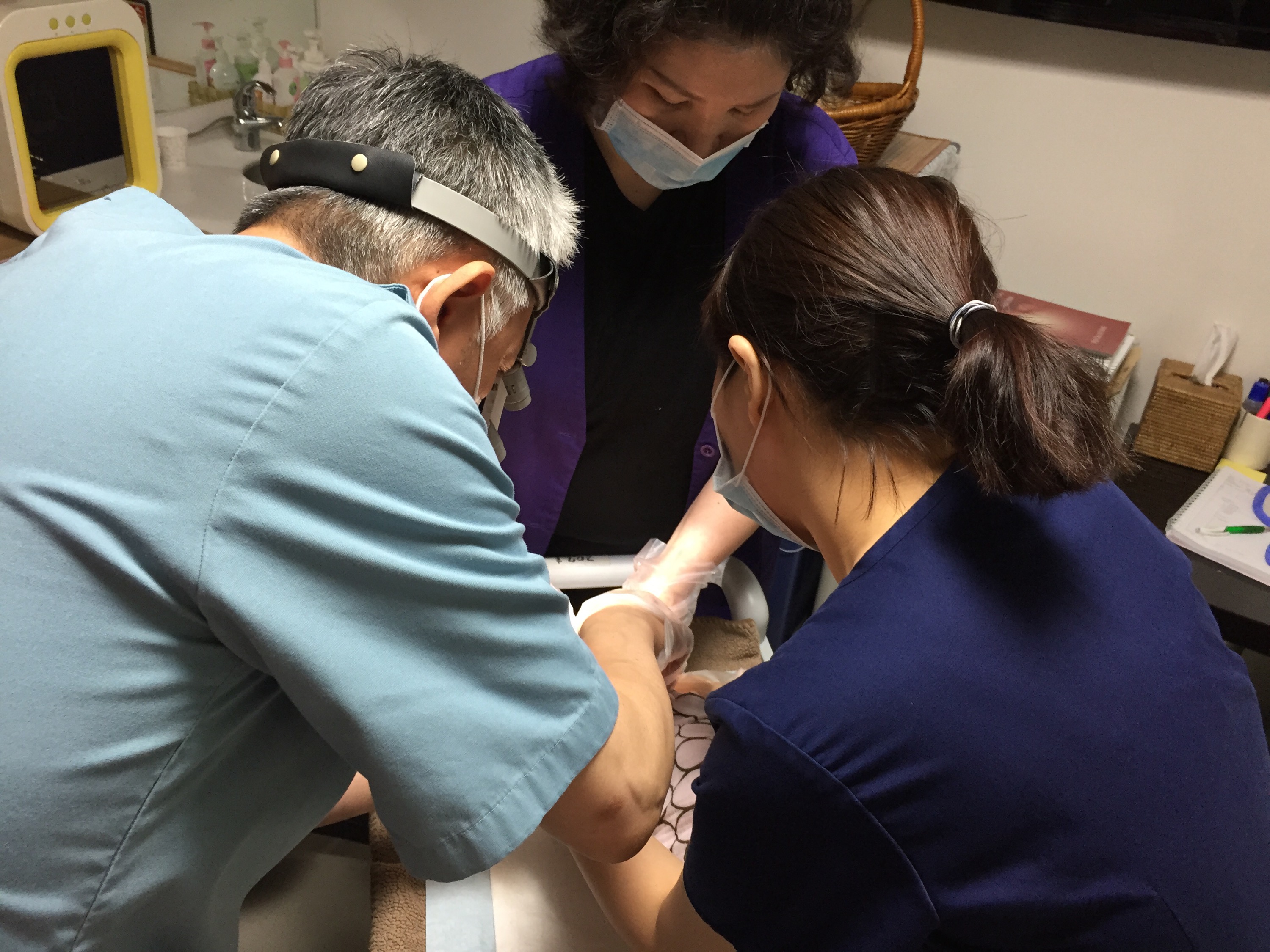 While she was showing off her little dimple before the procedure, Isa was not too pleased to have to undergo a minor snip today on the inside of her top lip. Isa had “lip tie,” a situation in which the upper lip is tethered too tightly to the upper gum.