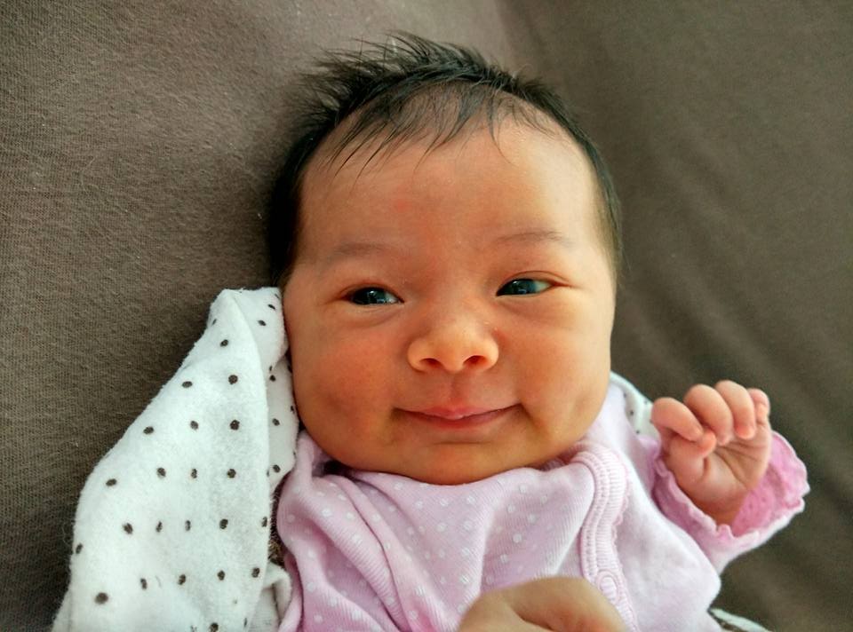 We’ve always known Eva is large for a two-and-a-half year old, but you really get a sense of scale when you see her up against the newborn. Good thing Eva was potty trained a few months ago — I can’t imagine changing Isabel’s diapers and then switching to giant Eva all the time. In the past couple of days, Isa has gone out on a few adventures — she made her first visit to Costco yesterday, and today she went to her sister Eva’s swim lesson to pick her up. Once the girls were home I snapped this photo before Eva wanted to try and feed Isa. She lifted up her shirt to show that she has nipples, but we had to explain that only mom can feed Isa right now. We’ve also gotten to see Isabel’s lovely dimples: