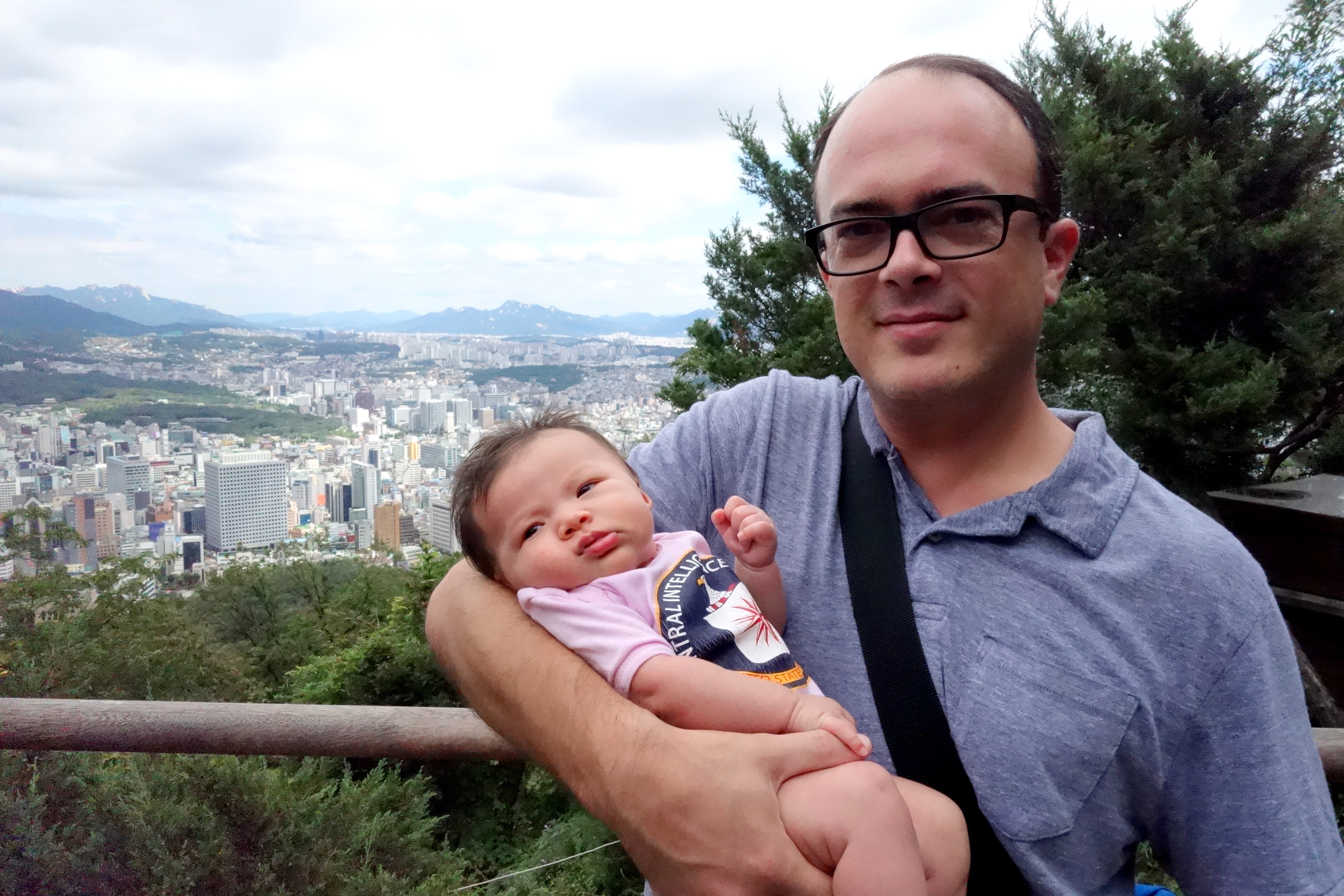 Isabel played tourist in her own town today, exploring Namsan, which is the mountain smack dab in the center of Seoul. Atop Namsan is Seoul Tower, which has a revolving restaurant that we did not go eat at. Instead, Isa came along to take a cable car to the peak, take a stoll in the clean mountain air and check out the sprawling vistas of the city from outdoor observation decks.