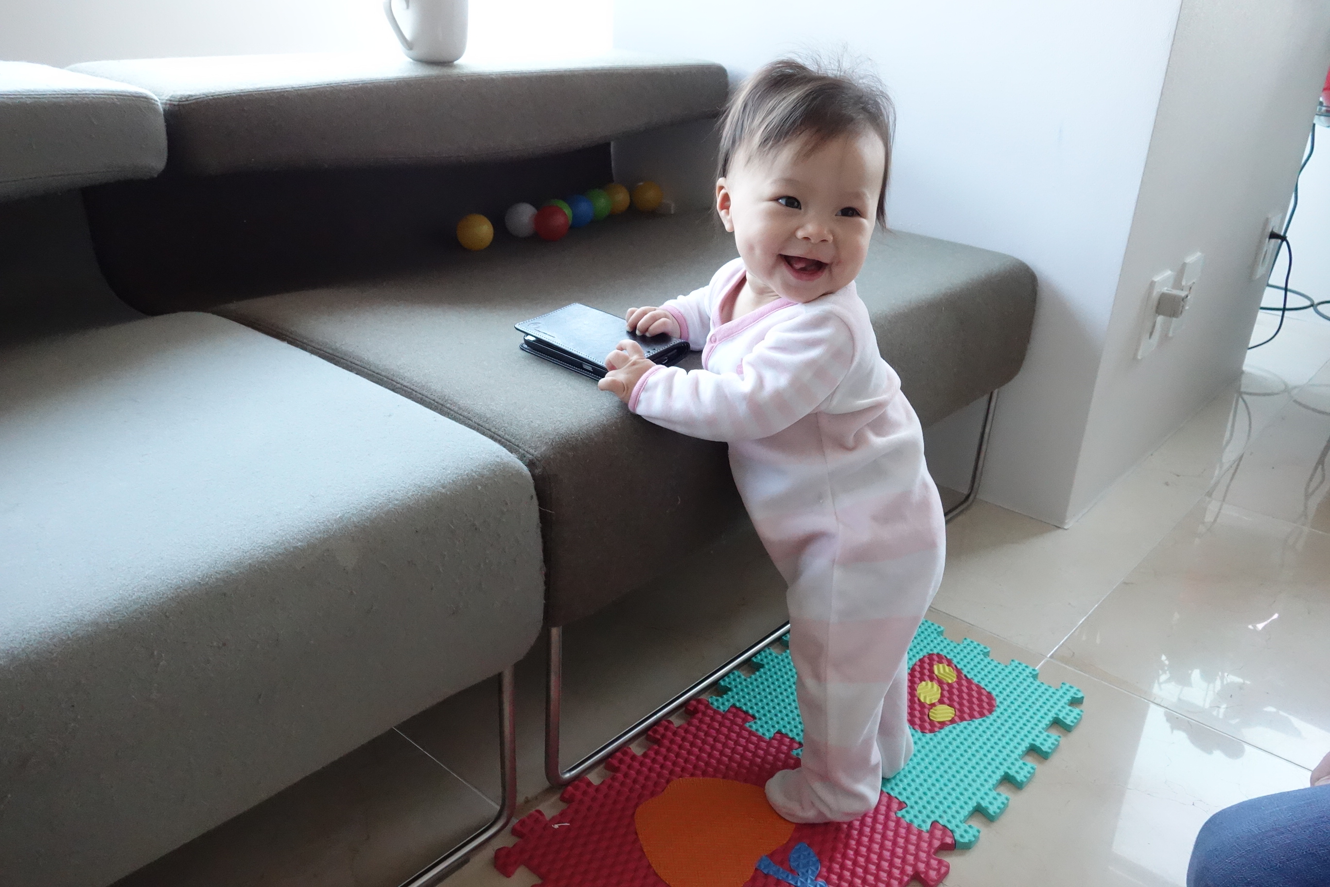 Isabel is not crawling yet, but she sure does love to stand up with some help. I don’t think babies ever skip the crawling stage, but from Isa’s general interests, she seems to want to walk more than she wants to crawl.