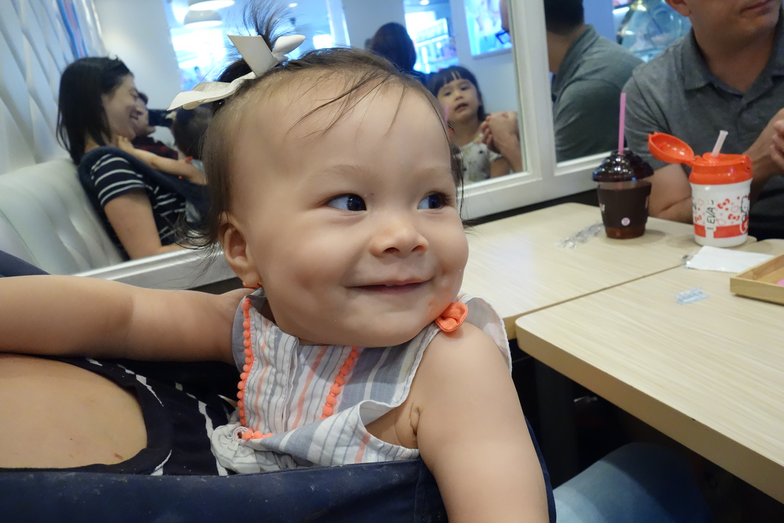 Momma was in Japan for the President’s big trip to Hiroshima, which meant several days away from the Isa beast! We went to brunch as a family and then to Baskin Robbins, where Isa enjoyed her first ever maracon. The ice cream inside our macaron ice cream sandwich surprised her a bit, since it was so cold, but she eventually really loved it.