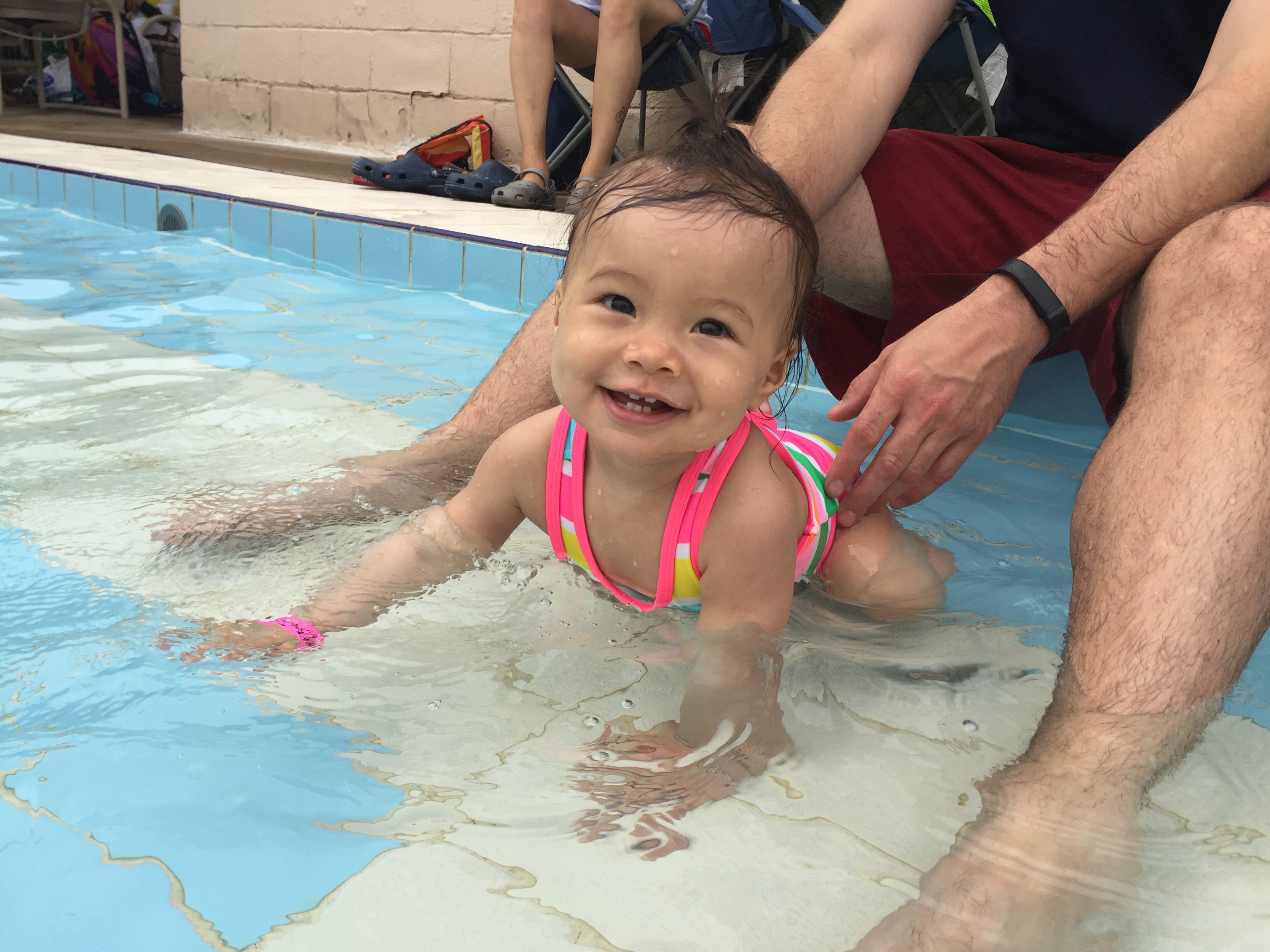 Isa loves splashing in the water violently and got so carried away that she kept trying to escape supervision. We joked she had a death wish, trying to swim away from momma in the 8ft deep water, even though she doesn’t know how.