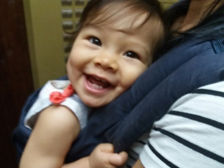 It’s monsoon season in Korea, which is great for farmers but daunting if you want to go run errands. Isa was strapped onto her nanny Yani and almost headed out the door but with great timing they ran into momma coming in from the rain, so Isa was spared an outdoor shower.