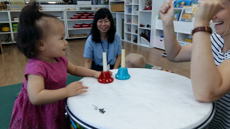 Dad took Isa to class and reports she enjoyed the small sink and washing her hands the most, but as for musical instruments her favorite was the drums. The teachers also really enjoyed playing with Isa, who is a real flirt.