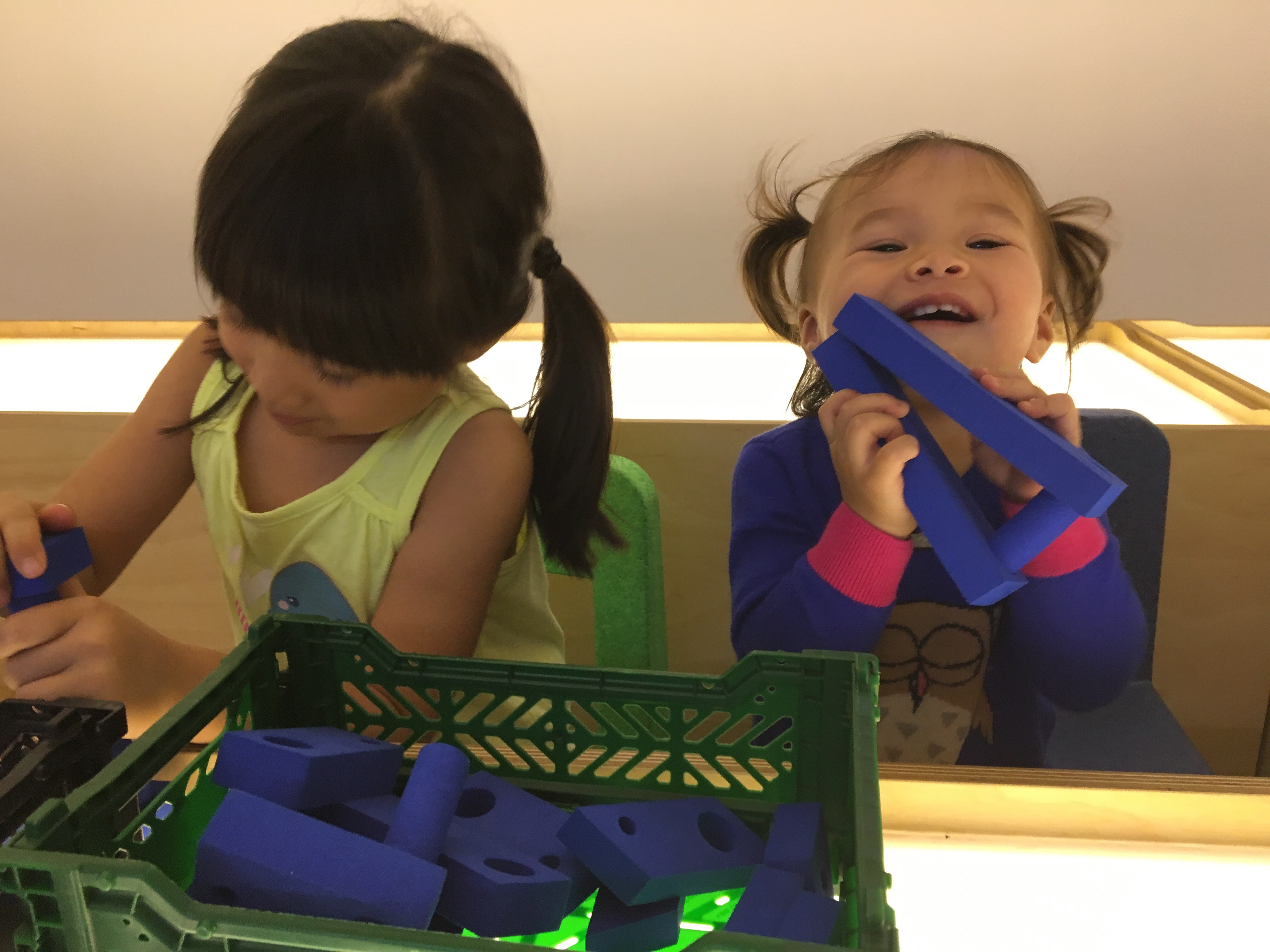 November 7, 2016 Imagination Station You’re supposed to use those blue pieces (below) to create towers and what not but Isa just liked hitting her sister with them and rubbing them on her face. Meanwhile, her climbing is more ‘bouldering’ these days. Share this: Click to share on X (Opens in new window) X Click to share on Facebook (Opens in new window) Facebook Like Loading... Related