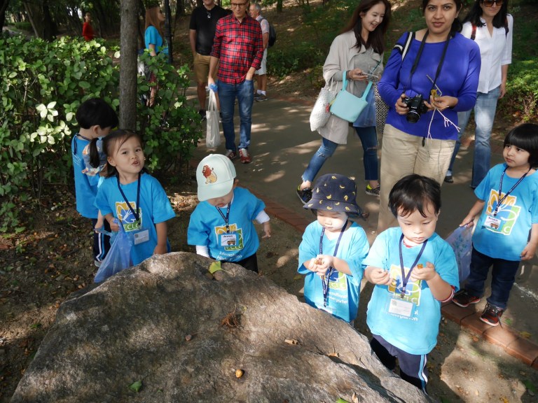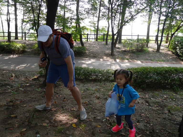 Isa’s toddler class went on its first field trip of the year, with moms and dads to Namsan Park, on Seoul’s central mountain — Namsan. The children had a great time at the park, using their five senses they’ve been learning about to explore nature.