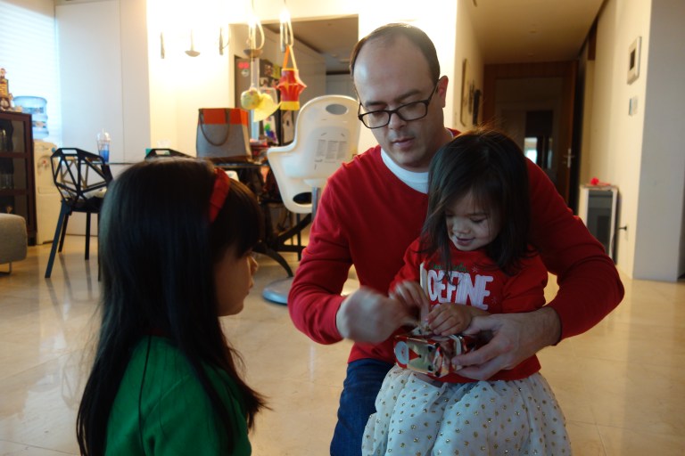 Isa really got into Christmas this year, now that she’s two and seems to get it a lot more. Her sister woke her up at 3am after Eva realized Santa had come and left presents, and Isa stayed up until 4:30am chatting with her overly excited big sister until managing to fall asleep again until the “real” morning.