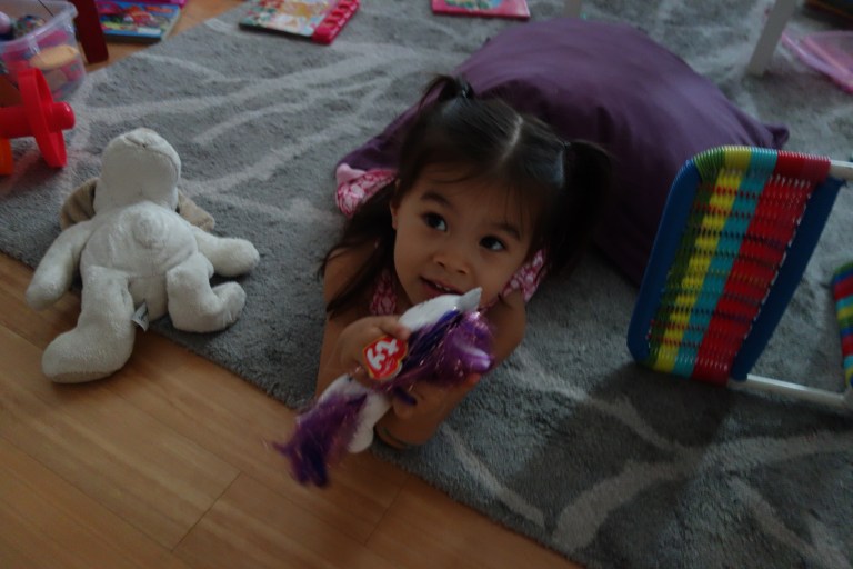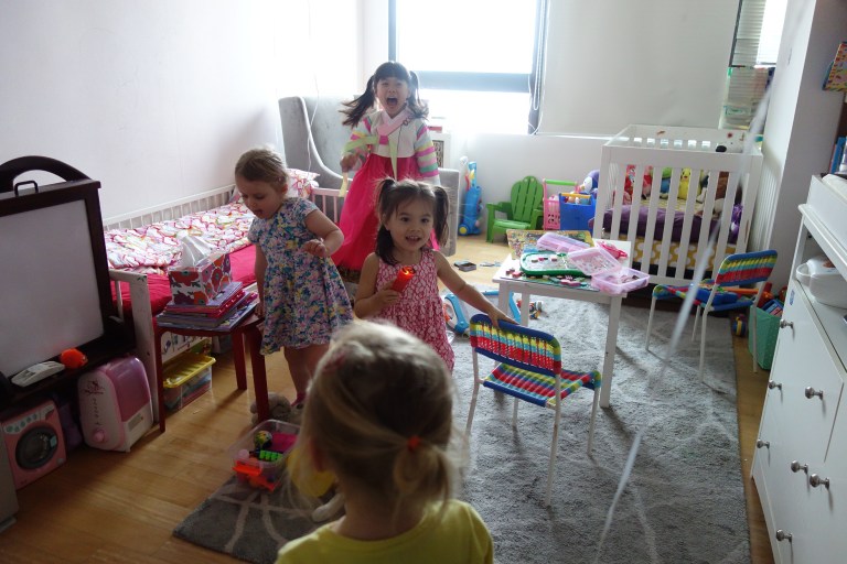 Isa takes a bit to warm up to new situations so while she was super excited to have a bunch of friends over for Luna’s first birthday, she didn’t play with them until halfway through the party. Boy did she enjoy the big moon balloons though. And all the brunch pastries like doughnuts and cake.