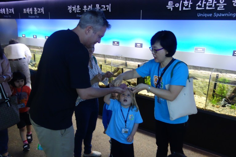 To close out the class unit on living creatures, Isa’s class visited the giant COEX Aquarium in Gangnam. Isa says she enjoyed feeding the fish the most, but she also liked touching the starfish and seeing all kinds of marine life she’s learned about in school.