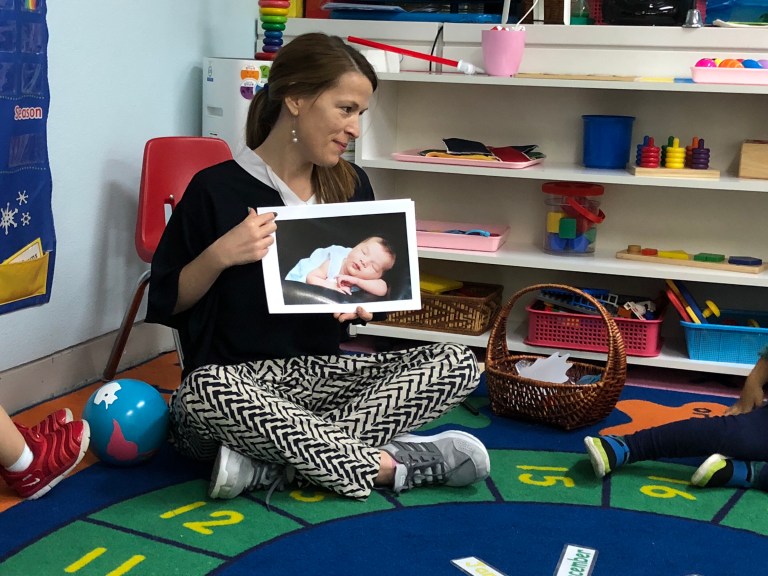 The children get to see one another as they got older through the years so Miss Hayley started by holding up Isa as a newborn.