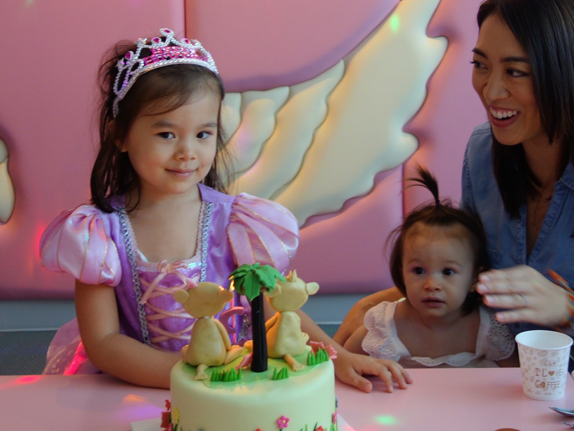 At age three, Isa is as silly and forceful as she’s ever been. She loves dressing up and putting on makeup, and has real aesthetic tastes so she demands to pick out all her clothes and accessories, especially accessories. So for her birthday at Wonderballs she did about four different wardrobe changes. She is into The Lion King this summer, so she asked for a cake but specifically with BABY Simba, and not adult Simba.