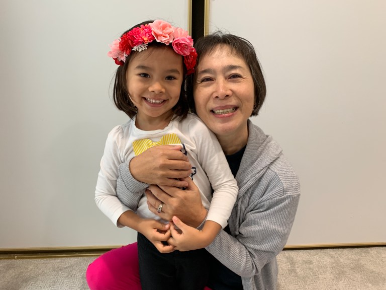 Oma, Isa’s grandma/twin, has arrived to stay in California at her Orange County condo for the summer so the grandparents are close to us. Oma got Isa something that’s just her taste — a flower crown!