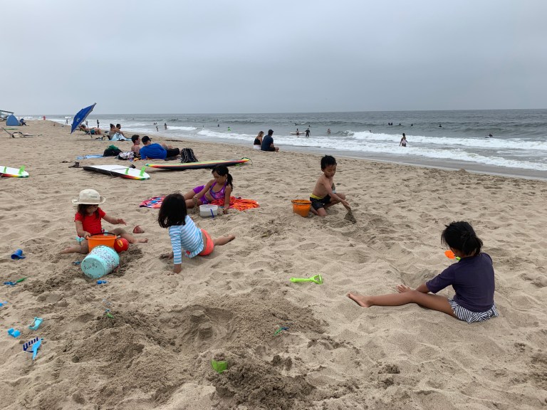 The whole squad spent the day at the beach as Eva and Jonah learned to surf. The younger kids made sand creations, which Isa can occupy herself with for a long time.