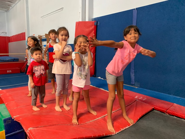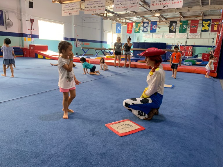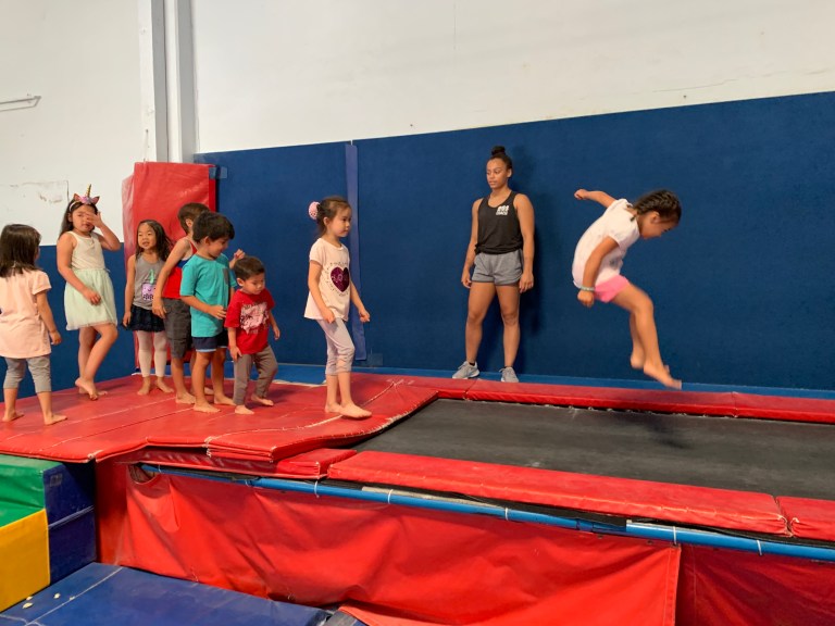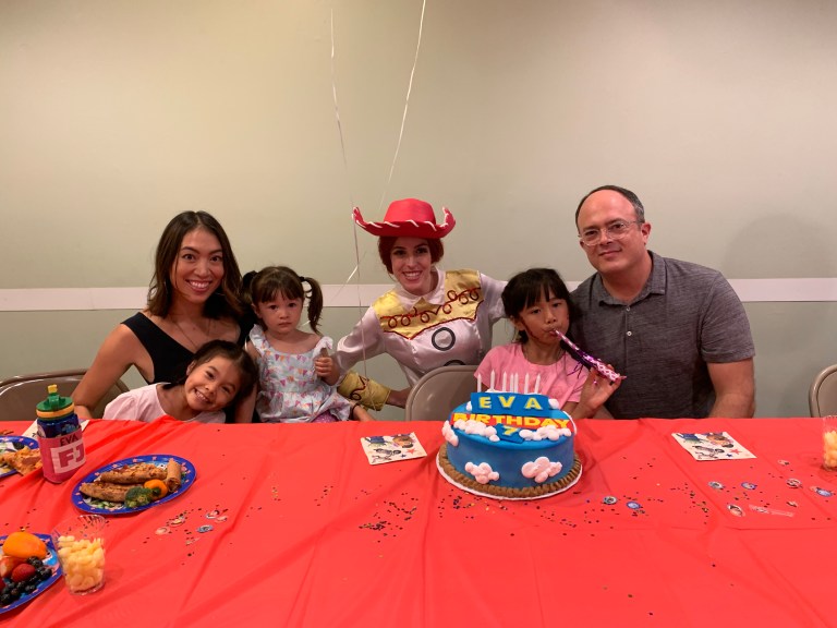 Eva celebrated with a private party at a huge gymnastics gym in West LA. Isa took to the trampolines and obstacle courses and zip line real fast.