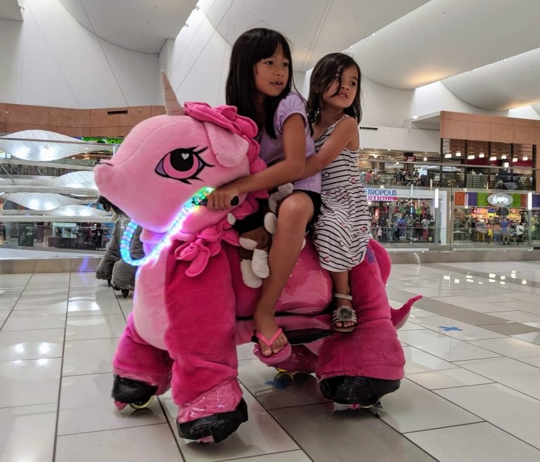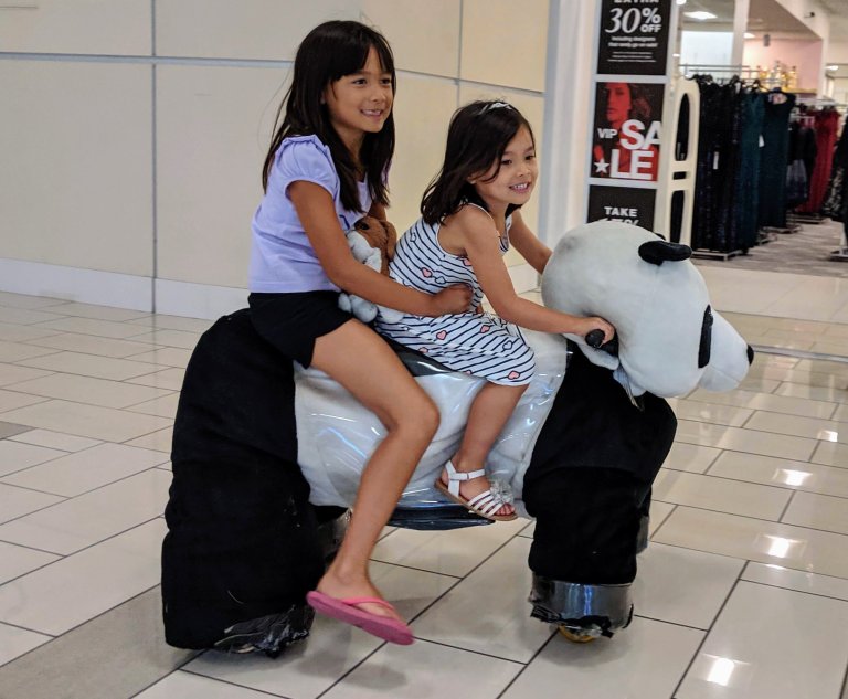 Isa and her sister, Eva, recently discovered these awesome animal cars at the mall. Isa crashed twice bur the girls had a blast.