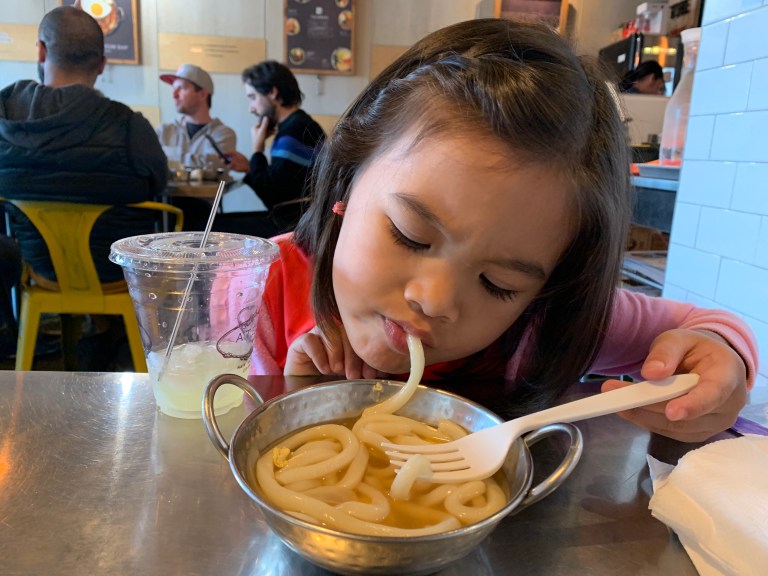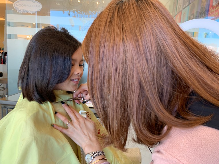 Isa freshened up her bob with her stylist Kate this morning, then joined me (mom) for seafood udon at the downstairs gimbap place.