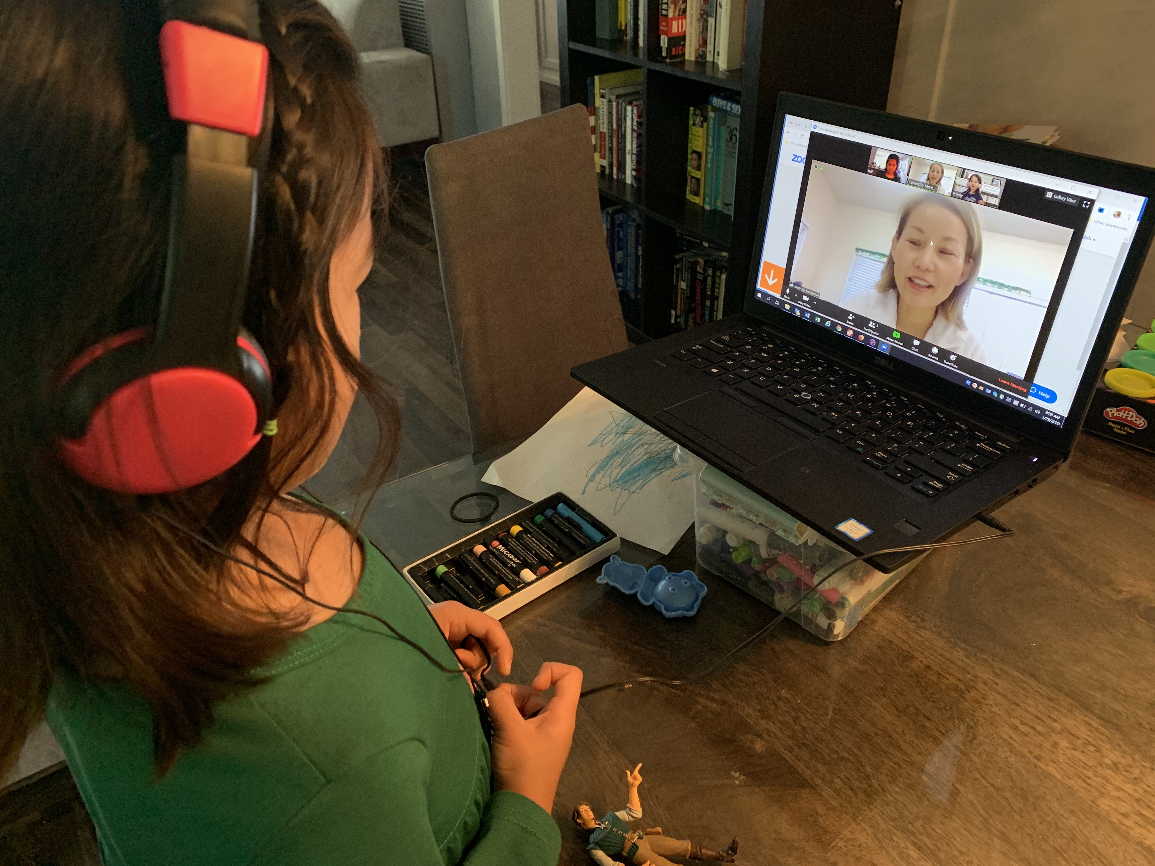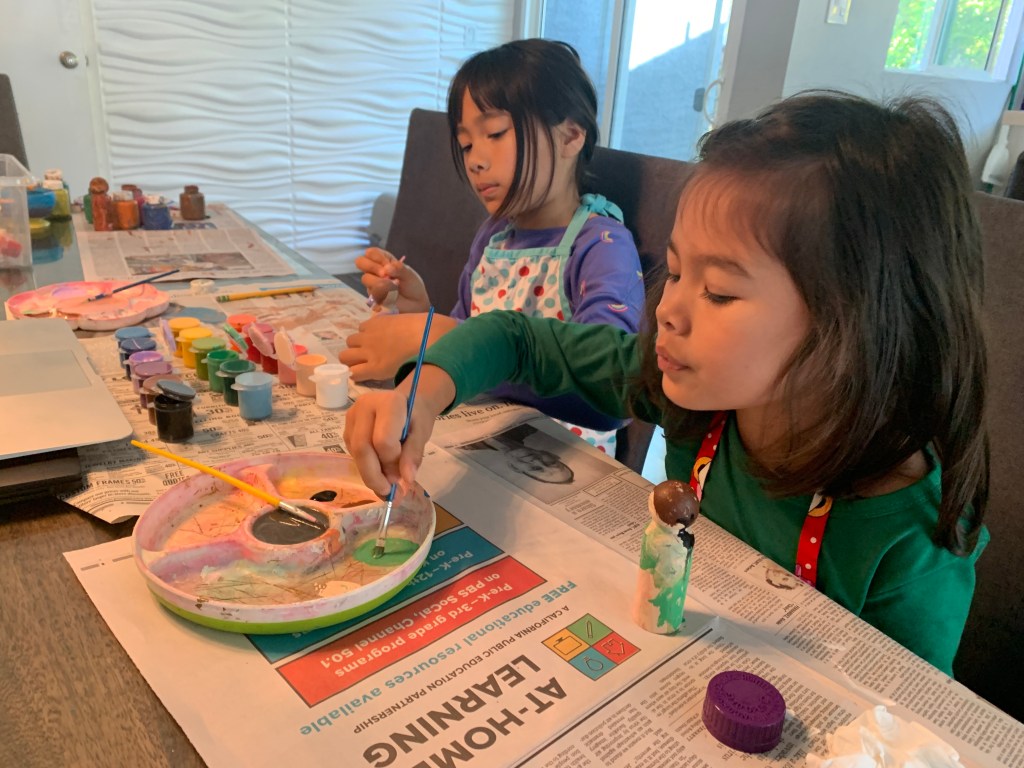 Isa started going to “class” with her teachers from Culver City Montessori over Zoom. And we continued with our art classes via Facebook Live.