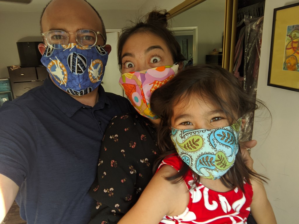 Our friends the Sinker family made these and mailed them from Chicago. Isa wears hers around her neck all day, even when she doesn’t need to go out with one on her face.