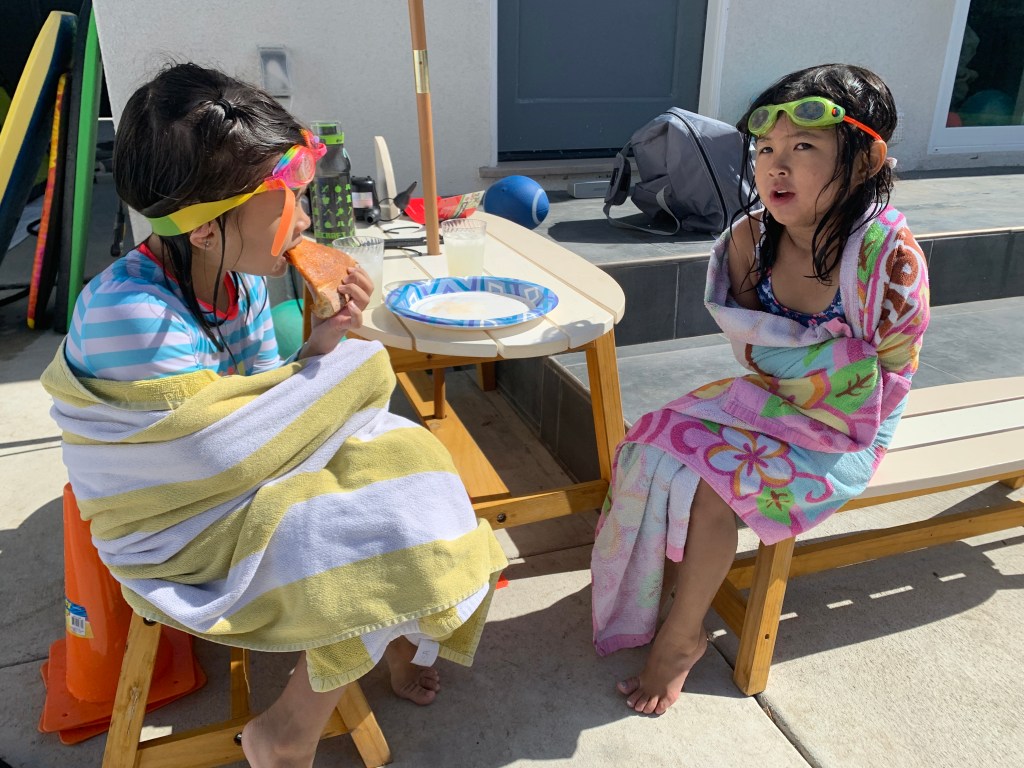 We reunited with one of our closest family friends and our longtime carpool buddies the Trinh’s in their backyard and the kids went from shy at first to as thick as thieves inside of three minutes.