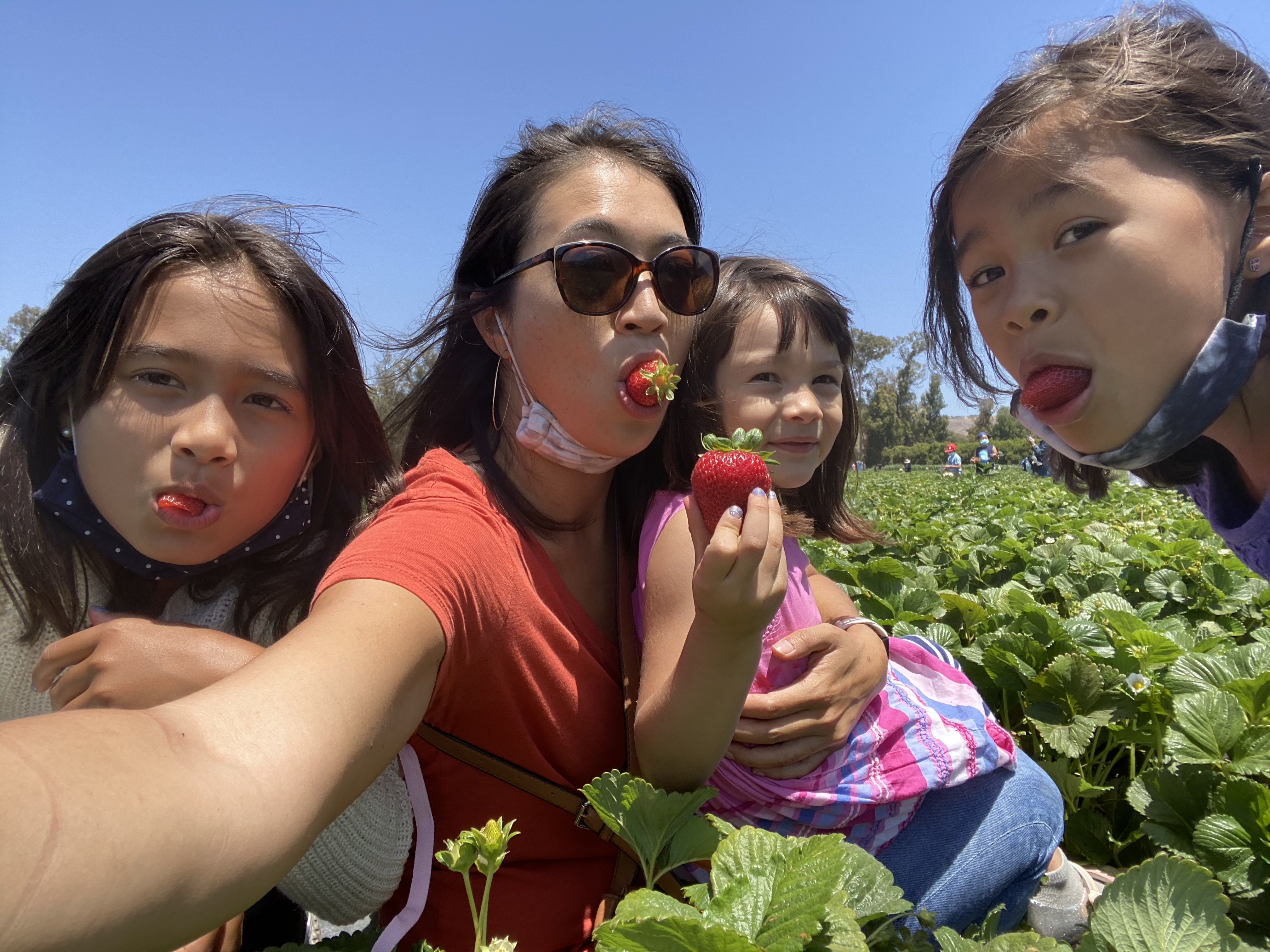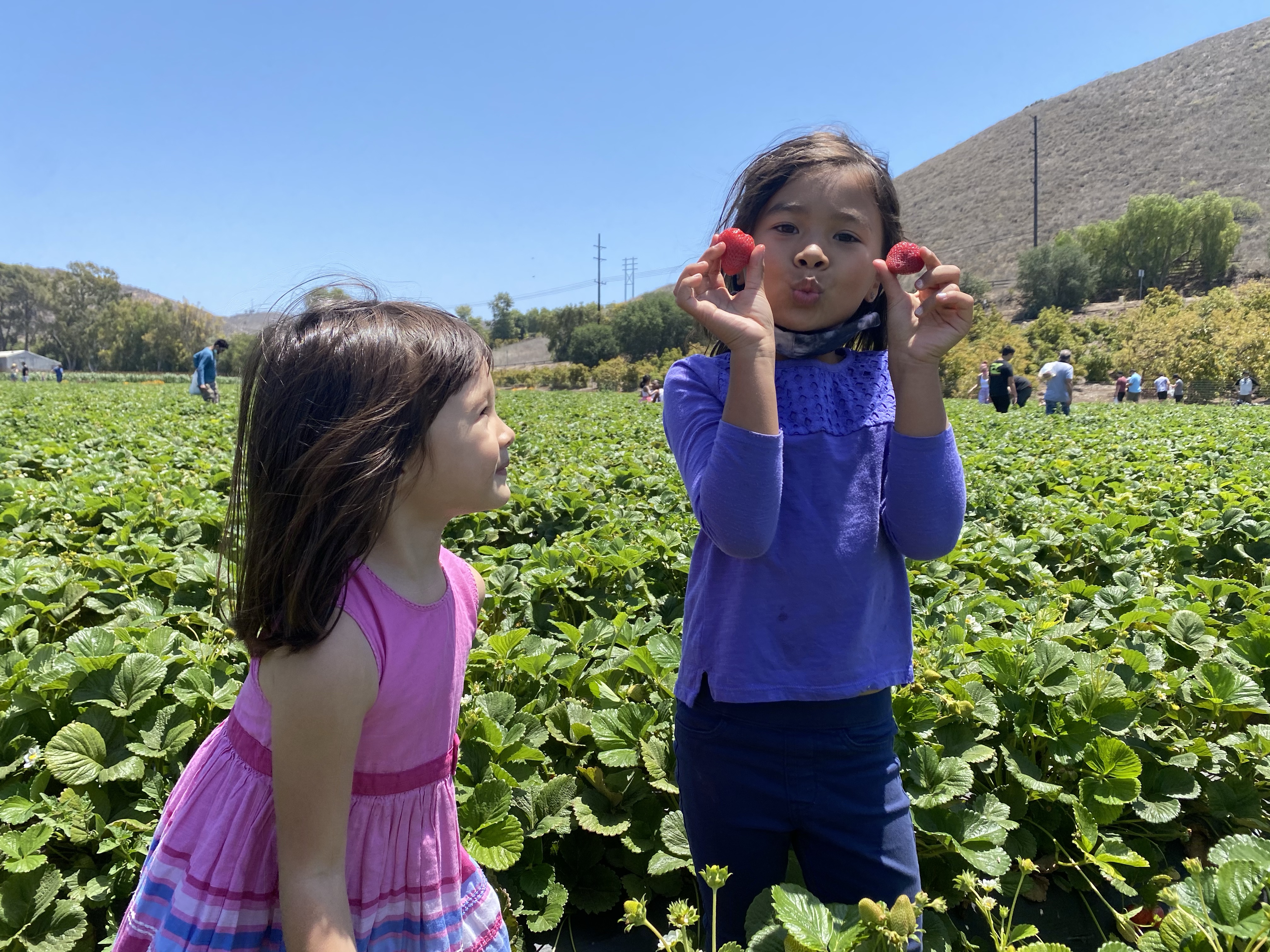 We took home a huge haul after picking strawberries up at Underwood Farms. Isa’s is the most perfectionist out of the three girls so it took her the longest be satisfied with the strawberries she was picking. She was also very scared of bees buzzing and not getting nicked by the scratchier leaves, so at some point while we were picking strawberries she got rather upset. But overall we had an awesome day of all of us girls picking strawberries on the farm and enjoying some time with some farm animals.
