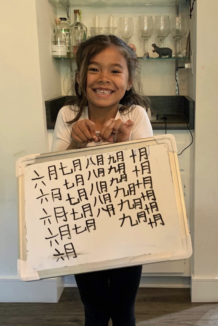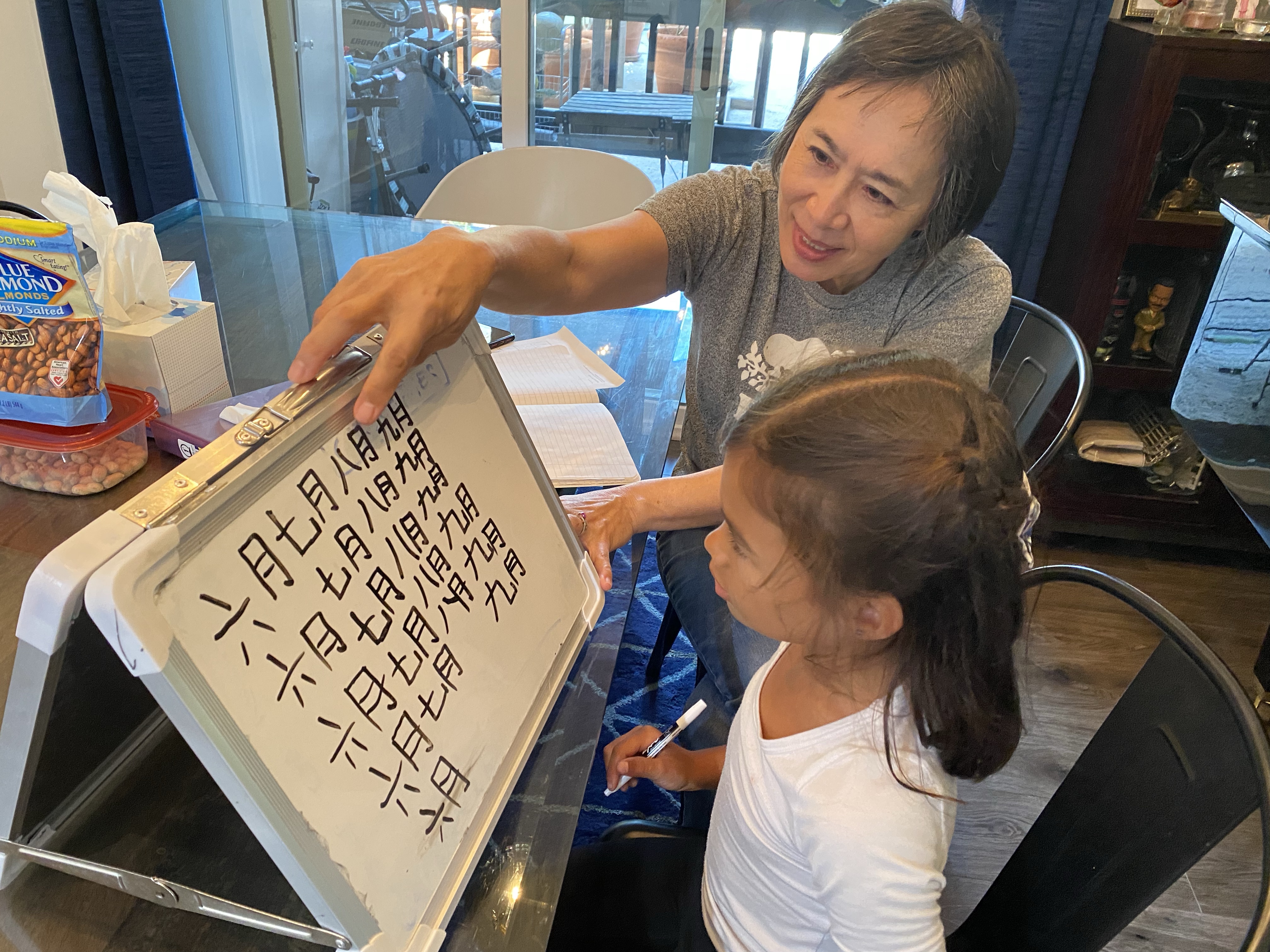 Isa is reviewing her kinder dictation words this summer with her school TA Lulu but also, this month Oma is visiting so they’ve been able to review together.