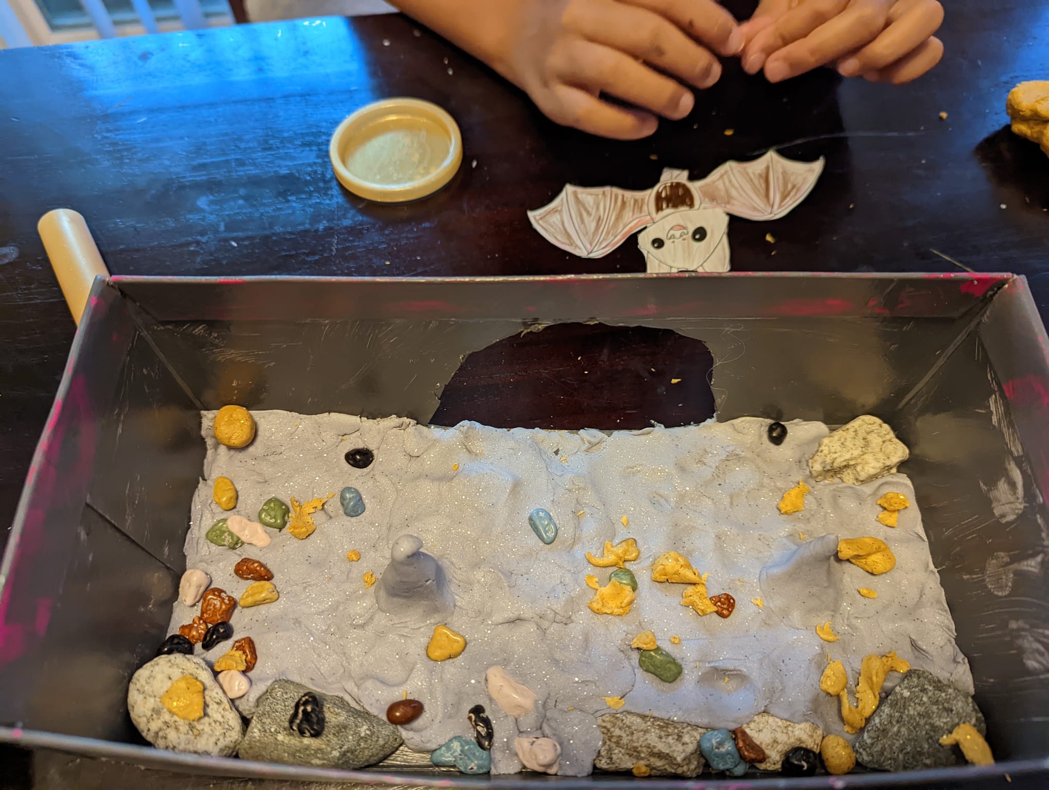At school each student did non-fiction research on a mammal and its habitat so they could be informed in making dioramas showing off these habitats. Isa chose bats, designed a cave and then presented this week to kids in other grades. Shes gotten so much more comfortable speaking in front of crowds this year; she’s grown so much!