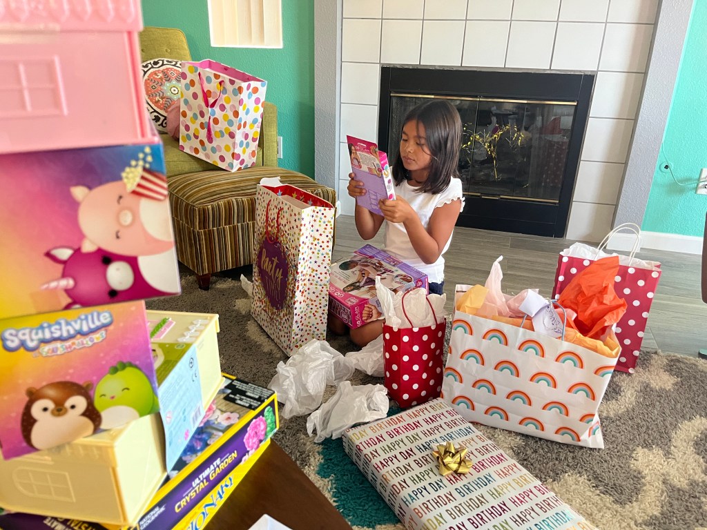 Also seen here is the annual treasure hunt tradition in which Isa likes us to hide her birthday presents all over the rental house so she can find them one by one.