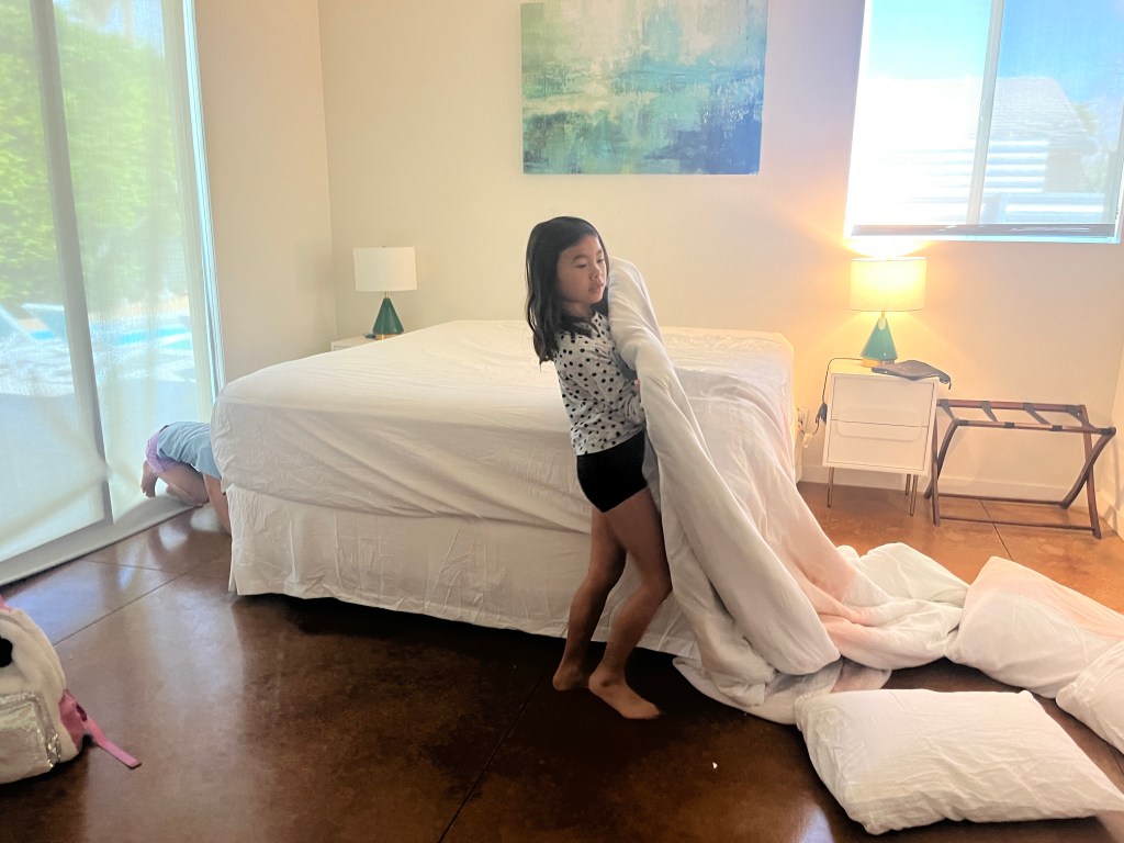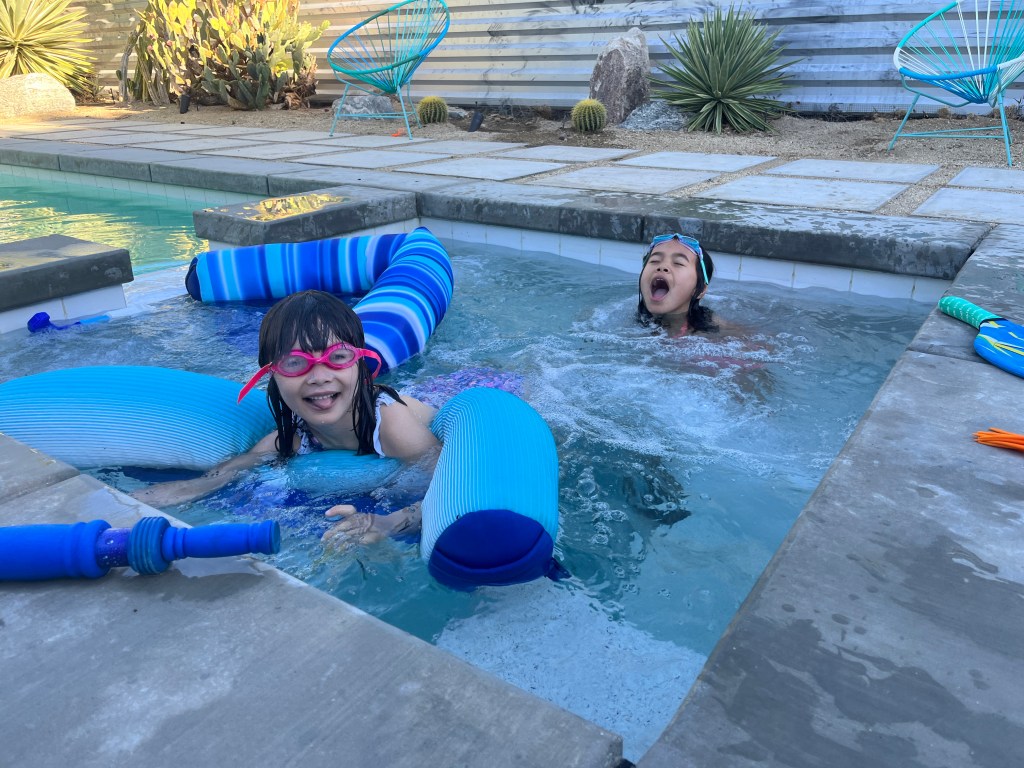 It has been unusually cold and rainy in California, and so it’s still pretty cold in the desert in Palm Springs, which is Isa’s favorite place. We were supposed to be in Yosemite, but it was snowed in, so we went to the desert as a back up. It brought Isa’s a lot of joy, even though it was largely too windy to swim.